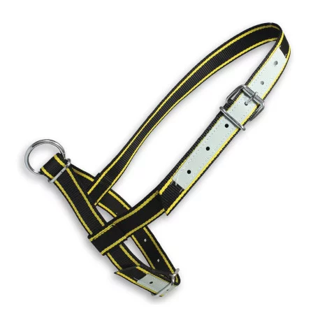 Ohlávka pro krávy a mladé býčky,vel. M nastavitelná, kožená výztuž, s D-kroužkem, černá - žlutá