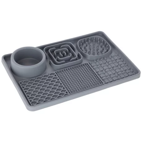 Lízací podložka pro psy XL s miskou, 30 x 20 cm, šedá